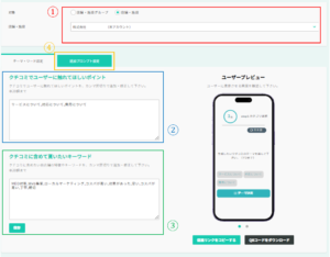 自動生成される口コミの品質を上げるためにAIに指示を行う箇所です。