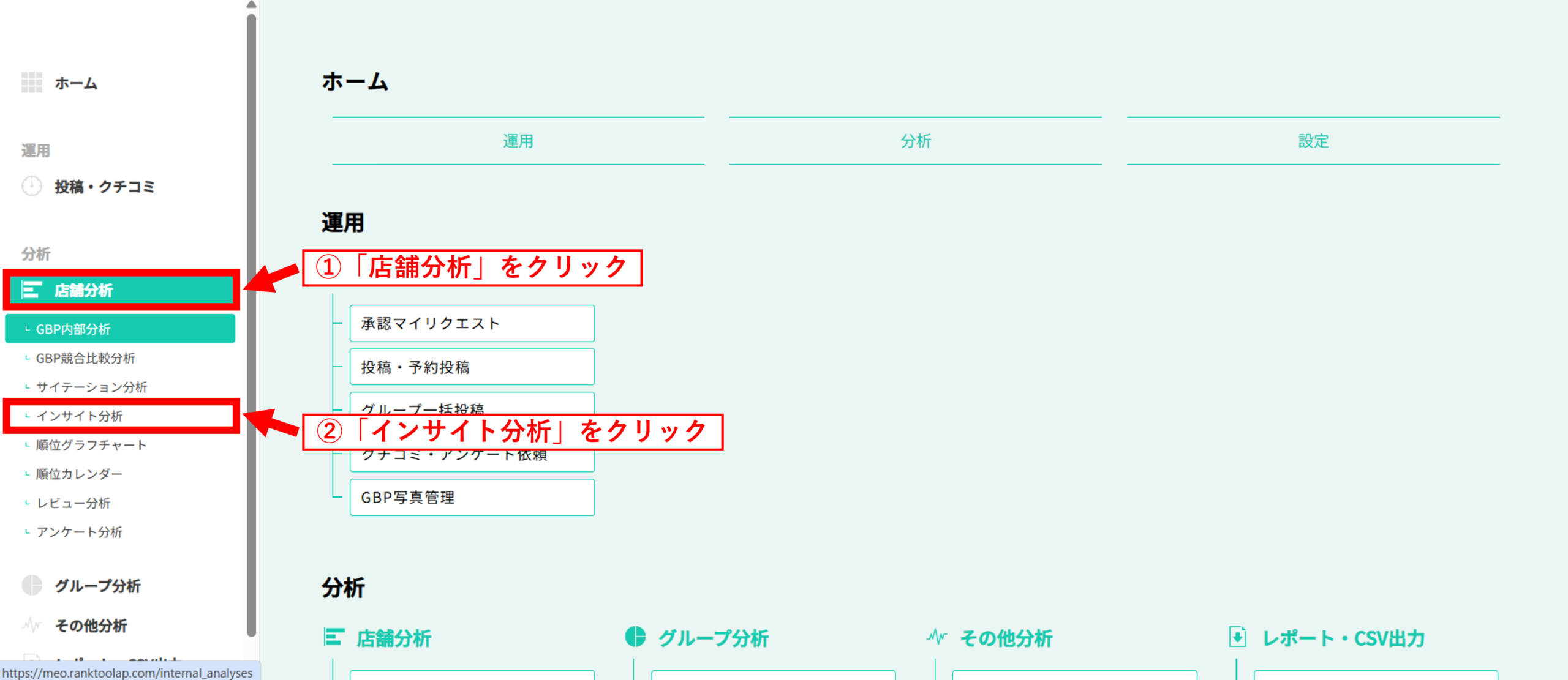インサイト分析機能は、GBPに対するユーザーのアクセス状況を数値で確認できる機能です。