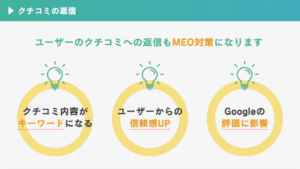 獲得したクチコミにきちんと返信できていることも、MEO対策の一環として重要です。