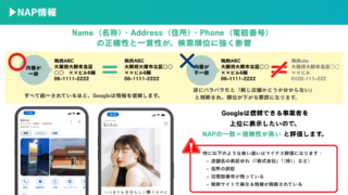 このNAP情報がネット上にある他の店舗の情報と「記載のされ方を含めて統一されているか」をGoogleは重視しています。